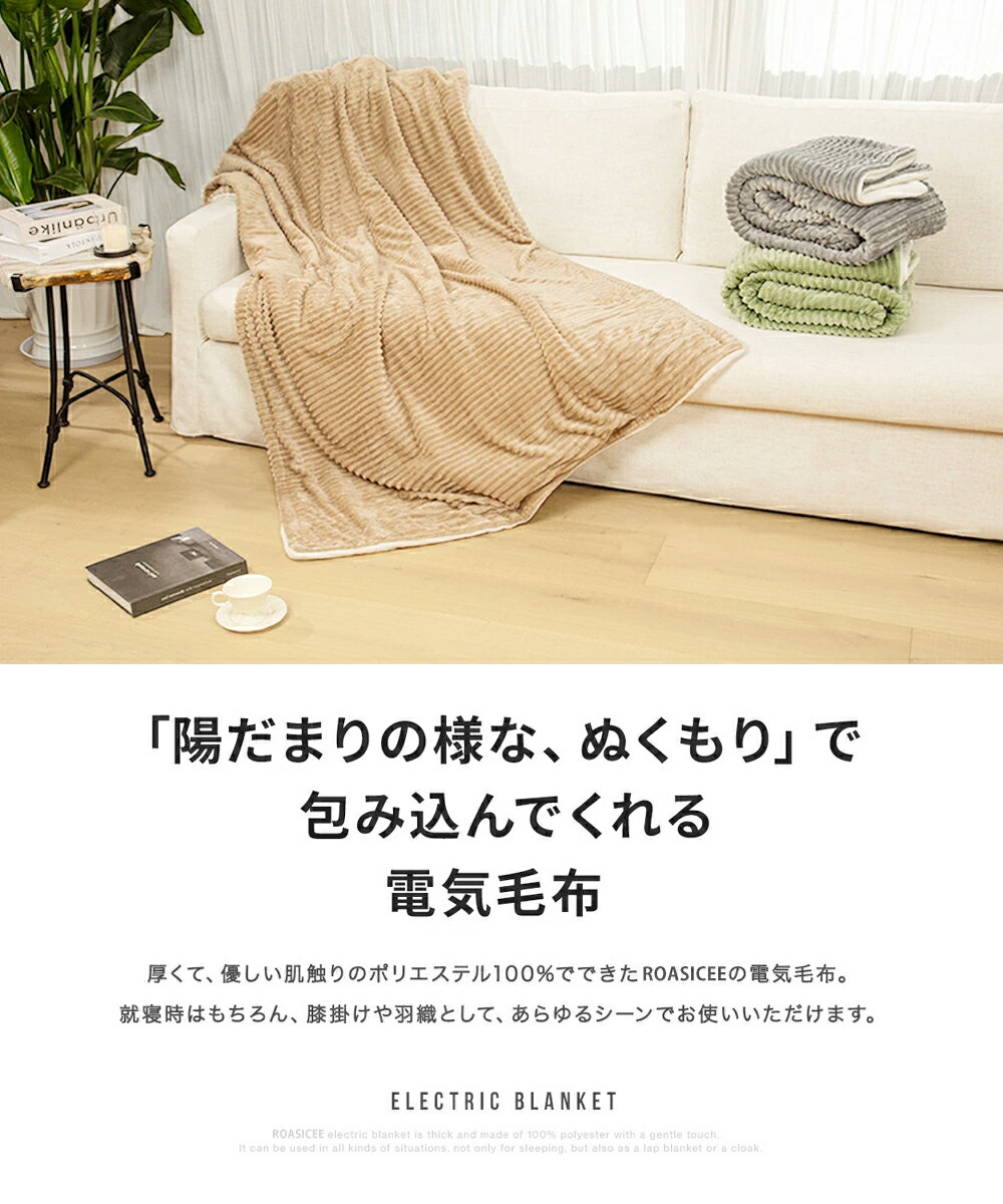 【楽天1位】【クーポン利用で4280円】【 日本カケン認証 】電気毛布 掛け敷き兼用 大判190×130/160×80/120×60cm 炭素繊維ヒーター 両用 フランネル 自動電源オフ ダニ退治 過熱保護 タイマー機能付 電気ブランケット ひざ掛け 洗える ダブル 節電 寒さ対策グッズ 家電 X Facebook はてブ Pocket LINE コピー 2025.02.09 【商品情報】 商品名: 【楽天1位】【クーポン利用で4280円】【 日本カケン認証 】電気毛布 掛け敷き兼用 大判190×130/160×80/120×60cm 炭素繊維ヒーター 両用 フランネル 自動電源オフ ダニ退治 過熱保護 タイマー機能付 電気ブランケット ひざ掛け 洗える ダブル 節電 寒さ対策グッズ 価格: 6,280円 商品説明 商品名: 2024年最新改良版 電気毛布 製品仕様: ブランド: ROASICEE 寸法: 約190×130cm 商品重量: 2.0/1.4/0.8KG 素材: やわらかなぬくもり フランネル素材加温素材: 日本製繊維ヒーター 温度段数: 6段 タイマー機能: 1-9時間 定格電圧: 100V 定格消費電力: 70W 温度範囲: 約25℃~55℃ 電源コード長さ: 2.5m ダニ退治機能: 本体丸洗い可能*コントローラーは洗えません さまざまな用途で使える: ひざ掛けの他に、肩掛けとしてもお使いいただけます。少し肌寒いなと感じた時に、この製品を肩にかけて使うととても温かい。 こんな使い方がおすすめ: ひざ掛けとして 肩掛けとして 簡単な毛布として 夏場のクーラー対策として ふわふわな素材を採用: ふわふわした触り心地のフランネル素材で作られていて、電気毛布なのにふわふわしていて、そしてしなやか。寝る前から電源を付けておけば、布団に入った瞬間、温かさが身体を包み込む。 細かく温度設定が可能: コントローラーで細かく温度を調節でき、温度段数以外にも調整可能。 簡単にダニ退治ができる: ポリ袋に毛布を入れ、布団に挟み、3時間「6」で運転するだけで99.9%以上のダニが死滅。 保証: 七日間の交換、返品が可能。返品条件には注意が必要。 価格:6,280円 買い物に進む